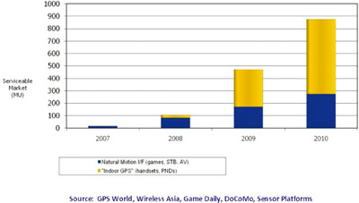 市場調(diào)研機(jī)構(gòu)iSuppli認(rèn)為,移動(dòng)傳感器(motion sensors)將代替?zhèn)鹘y(tǒng)的傳感器成為MEMS市場的主要推動(dòng)力,至少在2012年之前會是這樣。尤其是加速計(jì)(accelerometer),它在便攜式消費(fèi)電器中將被用來啟動(dòng)一系列高級界面功能。傳感器在消費(fèi)電器中的應(yīng)用正在迅速飆升,像用于游戲、筆記本電腦和數(shù)碼相機(jī)中的移動(dòng)傳感器就是實(shí)例。雖然以傳感器為基礎(chǔ)的微型機(jī)電系統(tǒng)(MEMS-microelectromechanical systems)的價(jià)格已經(jīng)在迅速下降,它們還是太昂貴而不能被用在一些對價(jià)格敏感的消費(fèi)產(chǎn)品中。