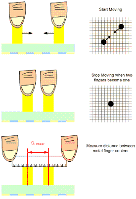 手指間距:手指間距定義為,當(dāng)觸摸屏控制器測(cè)量?jī)芍皇种傅奈恢脮r(shí),兩只手指中心點(diǎn)之間在屏幕上的最短距離。手指間距測(cè)量方法(圖2),是將兩個(gè)模擬或機(jī)械手指置于面板上,然后逐漸拉近兩只手指的距離,直到系統(tǒng)測(cè)到兩只手指為一只手指為止。有些觸摸屏供貨商的手指間距是指邊緣至邊緣的距離,有些則是中心點(diǎn)之間的距離。10毫米機(jī)械手指的10毫米手指間距,表明有多只手指觸碰到屏幕,或是手指之間的距離為10毫米,實(shí)際狀況取決于觸控控制器的規(guī)格定義。如果沒有良好的手指間距,就無(wú)法設(shè)計(jì)出多點(diǎn)觸控解決方案。對(duì)于仿真鍵盤而言,手指間距尤其重要,因?yàn)橐话阍谑褂梅抡骀I盤時(shí),手指在屏幕上的間距通常很短。