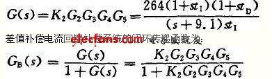 為了更清楚地表示一個自動控制系統中各組成環節間的相互影響和信號聯系,便于系統的分析研究,用方塊圖來表示控制系統的組成。差值電流回饋補償系統的方塊圖如圖2所示。圖2中,K2為檢測繞組的傳遞函數;G2為功放增益;G3為補償繞組傳遞函數;G4為電導增益;G5為補償繞組增益。
