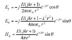 ,L1、L2為兩回路長度,m0為真空磁導率,r為兩回路導線段距離。因此增大r和減小回路面積都能減小M12。 輻射干擾輻射干擾由天線發射,由于通電的導線和電纜可視為等效天線,因此汽車電子設備的線束輻射干擾非常嚴重。根據Maxwell方程,典型單極天線的輻射電磁場為