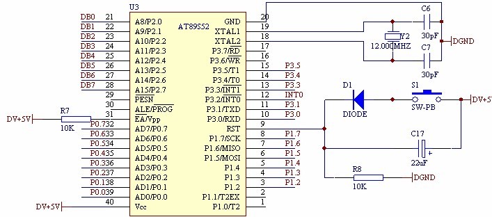 AT89S52 是一個(gè)低功耗,高性能CMOS 8 位單片機(jī),兼容標(biāo)準(zhǔn)MCS-51 指令系統(tǒng)及80C51 引腳結(jié)構(gòu)。