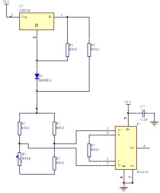 本文采用惠斯通電橋?yàn)V出微壓力傳感器輸出的模擬變量,然后用INA118放大器將此信號(hào)放大,用7715A/D 進(jìn)行模數(shù)轉(zhuǎn)換,將轉(zhuǎn)換完成的數(shù)字量經(jīng)單片機(jī)處理,最后由LCD 將其顯示,采用LM334 做的精密5 V 恒流源為電橋電路供電,完成了微壓力傳感器接口電路設(shè)計(jì),既能保證檢測(cè)的實(shí)時(shí)性,也能提高測(cè)量精度。