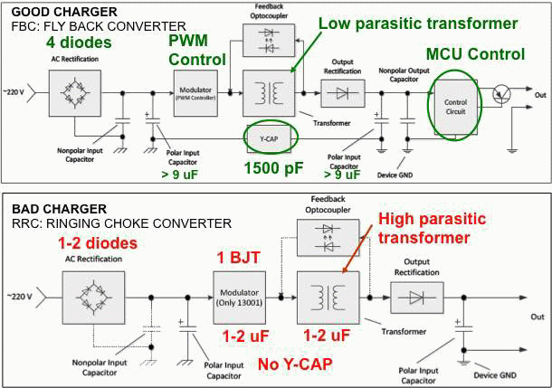設(shè)計用于配合特定電話工作的OEM廠商的充電器具有較嚴格的噪聲規(guī)格,同時,在充電電路中廣泛采用USB連接器為配件市場創(chuàng)造了巨大的機會。為了在其中進行競爭,配件廠商充分地降低充電器成本。采用低成本電子器件的充電器給手機充電將注入很多噪聲到觸摸屏,而導(dǎo)致其很可能無法使用。