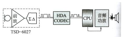 目前國際上IC廠商推向市場的內置式數字傳聲器IC芯片普遍采用∑一△模數轉換編碼格式,此編碼格式與相關應用設備采用的DSP及CODEC芯片的數字傳聲器輸入接口格式相兼容。