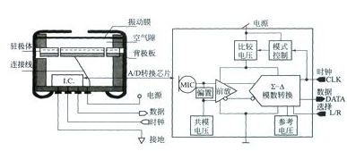 圖2數字傳聲器結構及模數轉換芯片原理圖