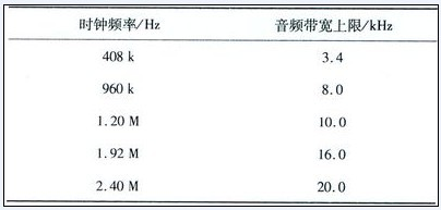 取樣時鐘與音頻帶寬上限的關系見表1.
