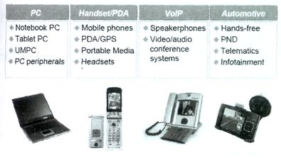 數字ECM或MEMS傳聲器和傳統的ECM傳聲器相比,有著不可取代的優勢。首先,移動設備向小型化數字化發展,急需數字拾音器件和技術與之配套;第二,數字設備包含的功能單元越來越多,如筆記本式計算機,集成了藍牙和WiFi無線功能,傳聲器的安裝位置距離這些干擾源很近,設備對傳聲器抗干擾性能的要求越來越高;第三,隨著三網合一的發展,需要上網、視頻和語音傳輸可以同時進行,這在移動設備中通常會遇到環境背景噪聲和線路回聲的影響;第四,從提高生產效率的角度考慮,希望對傳聲器元件采用SMT工藝焊接組裝。數字傳聲器尤其是具有集成電路本質的微機電( MEMS)數字傳聲器更加適合SMT焊接組裝工藝,為了解決系統各種射頻干擾對語音通信產生的噪聲,數字傳聲器尤其適用于通過算法編程達到陣列拾音技術的實現,對于抑制環境背景噪聲和消除通話時的線路回聲方面具有突出的技術優勢,數字傳聲器輸出接口格式同數字處理系統具有高度的接口兼容性。數字傳聲器的應用見圖7~8.