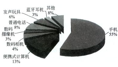 圖9 2010年全球微型駐極體傳聲器應用領域市場分布(按需求量)