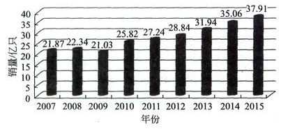 圖10  2007 - 2015年全球微型駐極體傳聲器銷量發展趨勢(2011年后為預測)