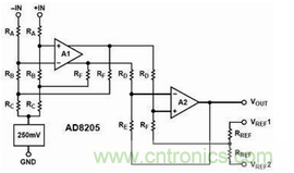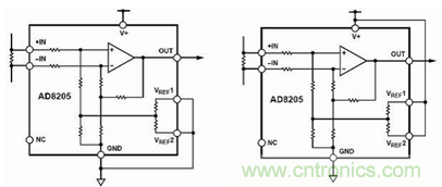 圖1:高側(cè)電流傳感器AD8205內(nèi)部電路原理圖