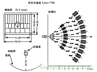 菲涅耳透鏡(圖3)根據菲涅耳原理制成,把紅外光線分成可見區和盲區,同時又有聚焦的作用,使熱釋電人體紅外傳感器 (PIR) 靈敏度大大增加。菲涅耳透鏡折射式和反射式兩種形式,其作用一是聚焦作用,將熱釋的紅外信號折射(反射)在PIR上;二是將檢測區內分為若干個明區和暗區,使進入檢測區的移動物體能以溫度變化的形式在PIR上產生變化熱釋紅外信號,這樣PIR就能產生變化電信號。