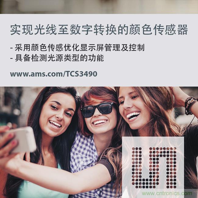 ams高級光學(xué)傳感器產(chǎn)品高級市場經(jīng)理David Moon表示:“消費電子設(shè)備的觸摸顯示屏是一個重要的競爭點。制造商可以通過更加智能的顯示屏管理功能使自己的品牌脫穎而出。TCS3490五通道顏色傳感器不僅賦予顯示屏更生動、更具吸引力的色彩,也在室內(nèi)、室外不同光照條件下使用戶的雙眼獲得更舒適的視覺體驗,因為該傳感器的CCT測量更緊密貼合人眼所能感知的色彩和亮度。”