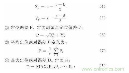 ①偏差Xp、Yp。假設在物理平臺上測試點的網格坐標取值范圍為X∈[a,b],Y∈[c,d](a、b、c、d為非負整數,b-a=d-c=1,單位為cm)通過軟件求得的坐標為(x,y),定義偏差Xp、Yp: