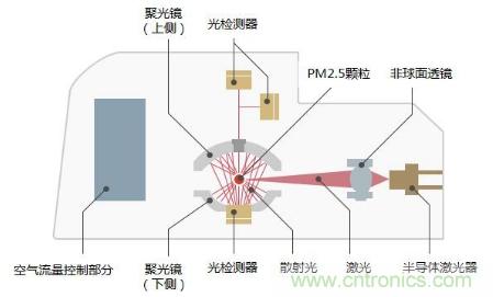 空氣質量傳感器通過調整各部位的配置實現了小型化,最小檢測粒徑可以達到0.3μm。
