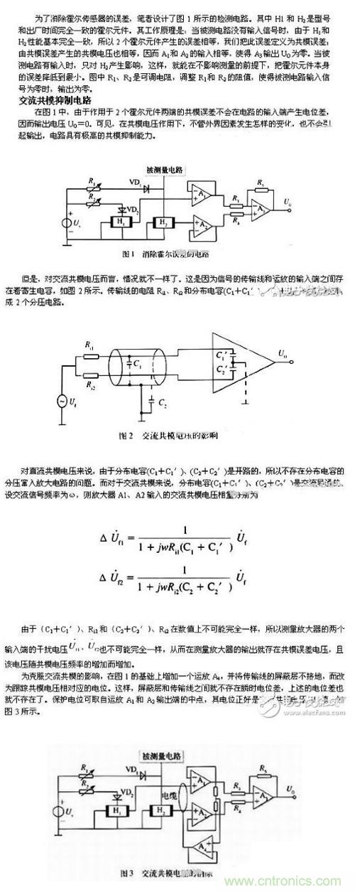 【導(dǎo)讀】霍爾傳感器以無(wú)觸點(diǎn),體積小,結(jié)構(gòu)簡(jiǎn)單等優(yōu)點(diǎn),在電測(cè)、自動(dòng)控制和計(jì)算裝置等方面得到了廣泛應(yīng)用。由于霍爾傳感器產(chǎn)生誤差的原因多,目前雖然采取了各種補(bǔ)償措施,但僅用一種補(bǔ)償電路很難有效地對(duì)各種誤差進(jìn)行補(bǔ)償。為此,本文設(shè)計(jì)了一種電路,不用補(bǔ)償電路就能有效地對(duì)各種誤差進(jìn)行補(bǔ)償。