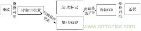 與現有技術相比,本發明通過掩模對準建立掩模與工件臺的位置關系,再建立基板與工件臺的位置關系,從而可以間接建立掩模與基板的位置關系,可以有效解決掩模、基板傳感器間相互位置漂移問題,從而消除該漂移對套刻的影響。