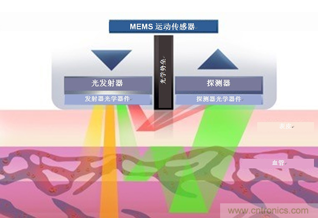 圖1:光學心率傳感器的基本結構與運行