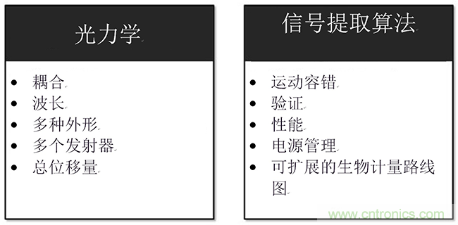 圖3:集成光學心率傳感器的主要挑戰