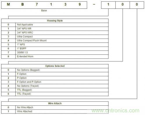 所有的零件號碼都是一個六字符的組合,后面是一個破折號和一個三位數的產品代碼。請查看下面的表格,以獲得關于三位數產品代碼的更多信息.
