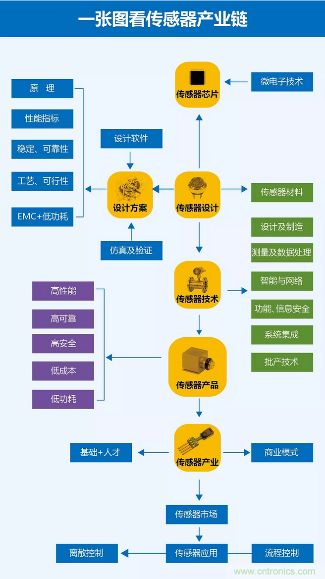 談及我國傳感器落后的原因,多位專家均表示:技術、工藝以及材料等多種因素使然。創新能力弱;關鍵技術尚未突破;產業結構不合理,品種少、系列不全;企業能力弱。
