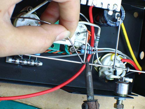 另一個方法就是前面提到的,直接使用電烙鐵熔掉焊錫,但這樣就存在不小的危險性,既要小心焊點沒完全被熔掉,又怕接觸的太久燒壞元件。常用的方法是在加溫的時候就用鑷子夾住元件外拉,當溫度達到時,元件就會被拉出,但切記不要太用力了,否則管腳斷在焊錫中就麻煩了。