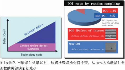 半導體制造中廣泛采用晶圓自動檢測系統(tǒng)已逾30年。在線晶圓檢測有助于推進制造技術的發(fā)展,它能早期檢測到工藝中的缺陷,從而減少開發(fā)時間并防止產出超時。過去,檢測缺陷的能力是主要關注點之一,但現(xiàn)在的要求改變了。近幾年來,每一晶圓的缺陷計數(shù)迅速增長至每一晶圓多達100萬個缺陷,這是因為晶圓尺寸變大,同時檢測技術靈敏度更高了(圖1)。雖然總檢測計數(shù)增加及關鍵缺陷尺寸變得更小,這一時期缺陷檢查的典型策略并未改變,尤其是在隨機取樣占主導的缺陷檢查區(qū)域。這種情況能產生常與干擾缺陷在一起的缺陷pareto圖(圖2)。