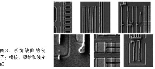 傳統(tǒng)的在線監(jiān)控策略主要關注像隨機微粒這樣的隨機缺陷。盡管檢測隨機微粒很重要,但更先進的技術節(jié)點出現(xiàn)了很難檢測的系統(tǒng)缺陷(圖3)。即使檢測后,從大量缺陷計數(shù)中識別這些缺陷也頗具挑戰(zhàn)性,每晶圓50個缺陷的取樣率僅是105個缺陷數(shù)據(jù)的0.05%。隨著系統(tǒng)缺陷的增加,人們更多關注識別工藝開發(fā)早期的作圖問題以減少產品推出周期。