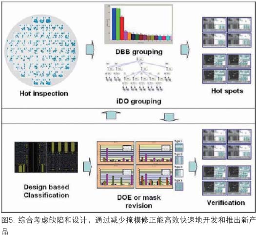 用與設計相關的檢測設置,現(xiàn)在可以產生更智能化的檢測菜單,注意力集中在最重要的芯片區(qū)域。這一技術已成功地在開發(fā)和生產工廠中進行了試驗。引入新方法后,缺陷識別更有效,因而能通過分析實驗結果減少工藝開發(fā)時間(圖5)。由于能方便地監(jiān)控關鍵結構,就可以評估每一組實驗,以便選擇刻印圖形結果最好的工藝條件。