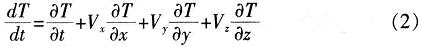 三維直角坐標(biāo)系中的瞬態(tài)溫度場場變量T(x,y,z,t)滿足: