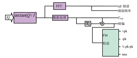 對此數組進行FFT計算,得到AF頻譜,其基波頻率即調制頻率fmod ,根據AF頻譜,可以計算調制諧波失真和信納比;